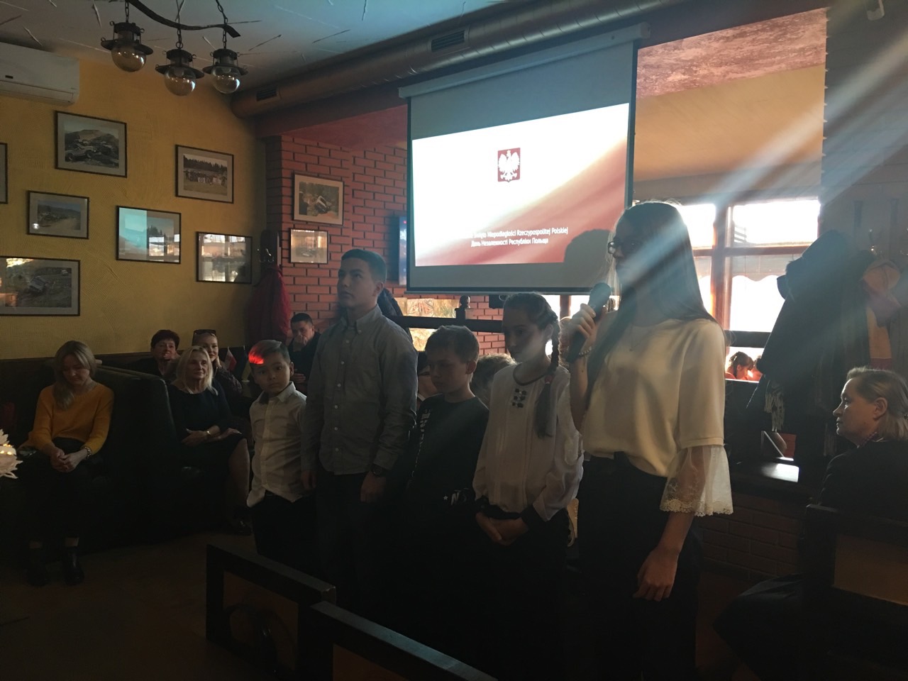 11 listopada w ramach obchodów 100-lecia odzyskania niepodległości przez Polskę przeprowadzono akademię patriotyczną, podczas której młodzież TKPZ im. Gniewy Wołosiewicz przedstawiła prezentację o historii Narodowego Święta Niepodległości wykorzystując wideo- i audio-materiały. Obecni z dużym zainteresowaniem słuchali opowiedzi o odzyskaniu suwerenności po 123 latach niewoli oraz bohaterskiej walce o niepodległość wielu pokoleń Polek i Polaków. Uczniowie Polskiej Szkoły Sobotnio-Niedzielnej im. ks. Prof. J. Tischnera recytowali wiersze patriotyczne.